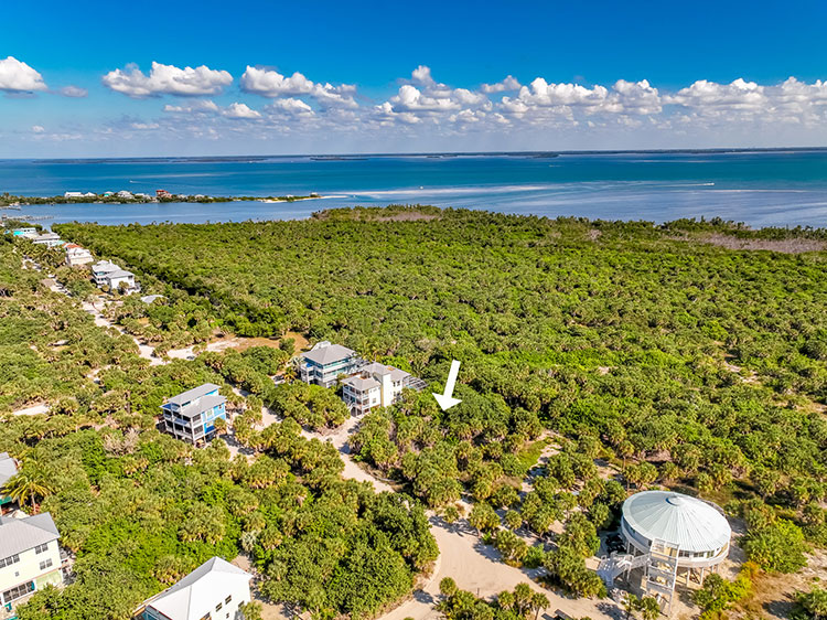 Just a short hop to Gulf & Bay beaches, this 75 x 115 island building lot has potential for water views from the lookout level. Close to airstrip and ferry landing too!