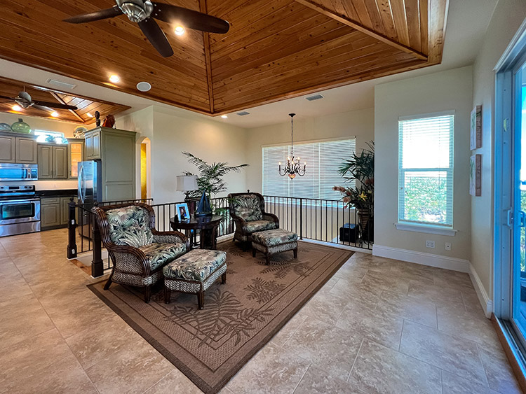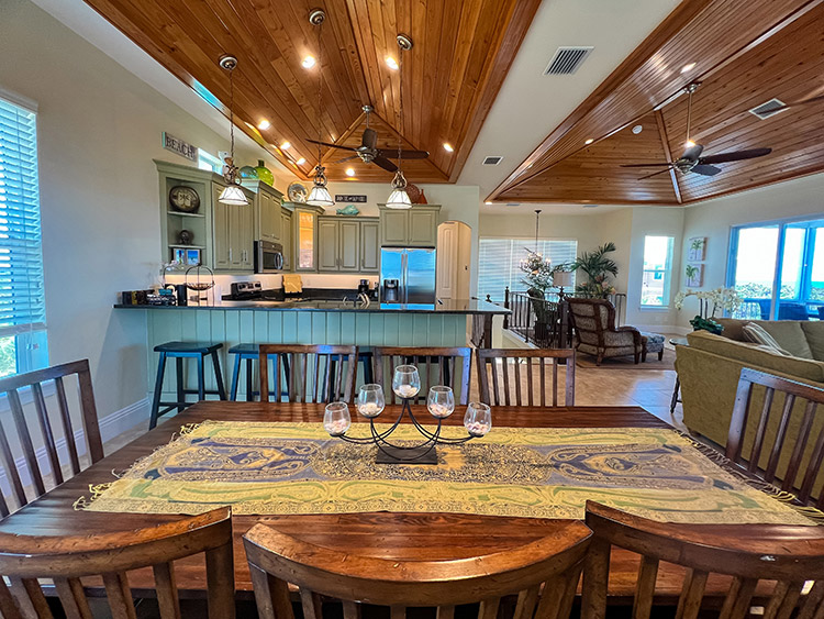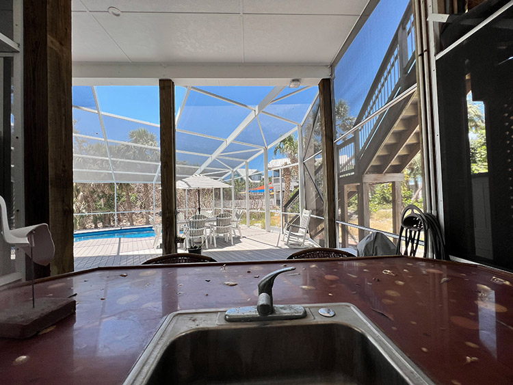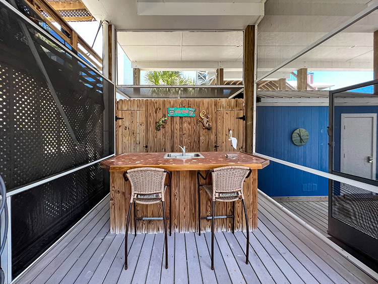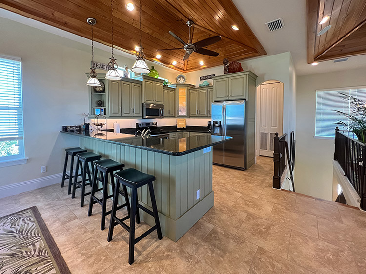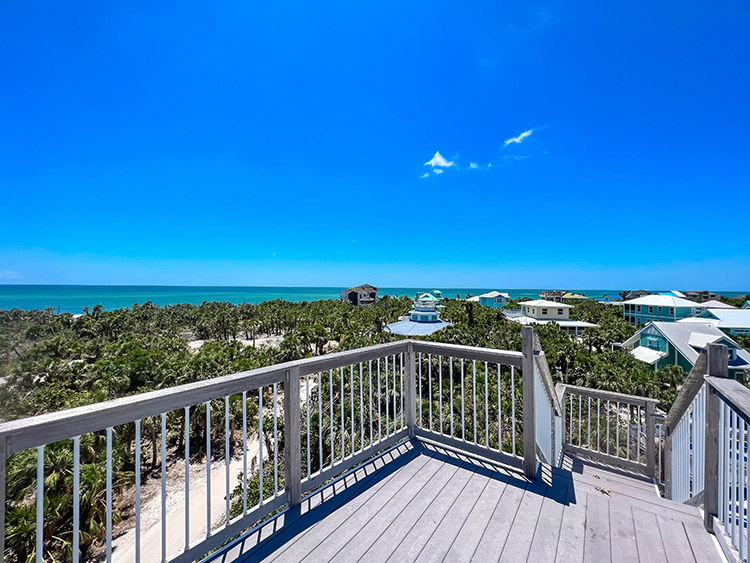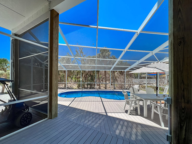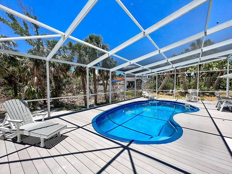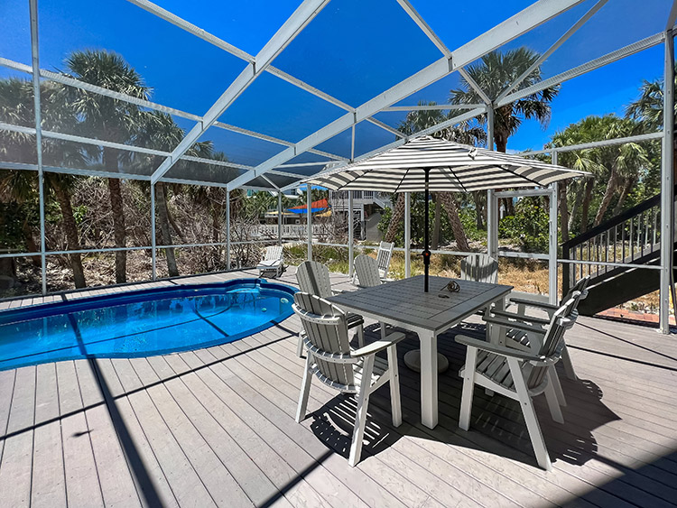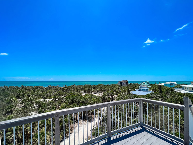On the second floor, the expansive kitchen, showcases elegant granite countertops and stainless steel appliances, provides the perfect setting for culinary creations and entertaining loved ones. The gorgeous living room beckons relaxation and comfort, while the covered screen porch showcases panoramic gulf views for peaceful moments of serenity. Ascend to the top-story lookout deck to witness breathtaking sunsets and 360-degree views of the island, gulf, preserve, and bay. A screen-caged heated pool awaits to complete this paradise, accompanied by a delightful poolside bar where you can bask in the sun while sipping on refreshing beverages. This turn key home is impeccably well built and maintained, having survived the recent storm with minimal damage. Ready for immediate enjoyment and high performance rental income generation. Adding to the allure of this exceptional property, an extremely rare 32' DOCK parcel/easement is available for purchase with this home. This property has it all.