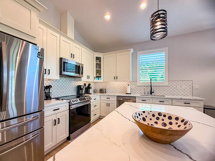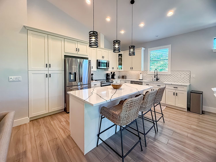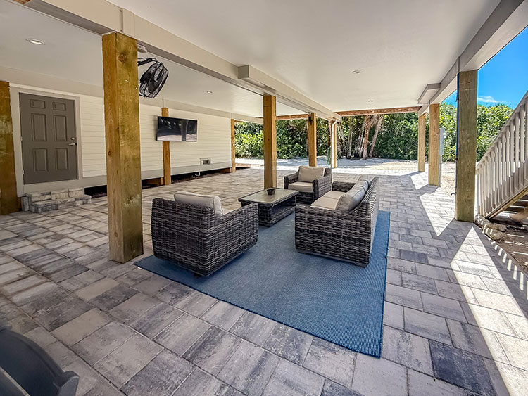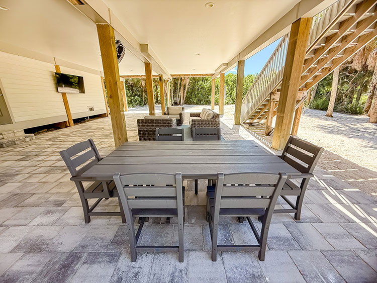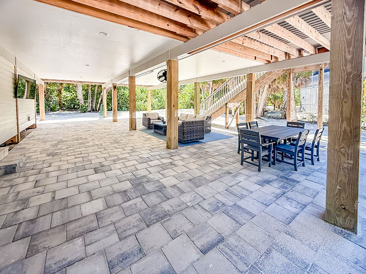 Step outside and enjoy a spacious ground-level paver patio is perfect for outdoor dining, grilling, and entertaining. A large enclosed garage offers ample storage for beach gear and space to park a golf cart (or two).