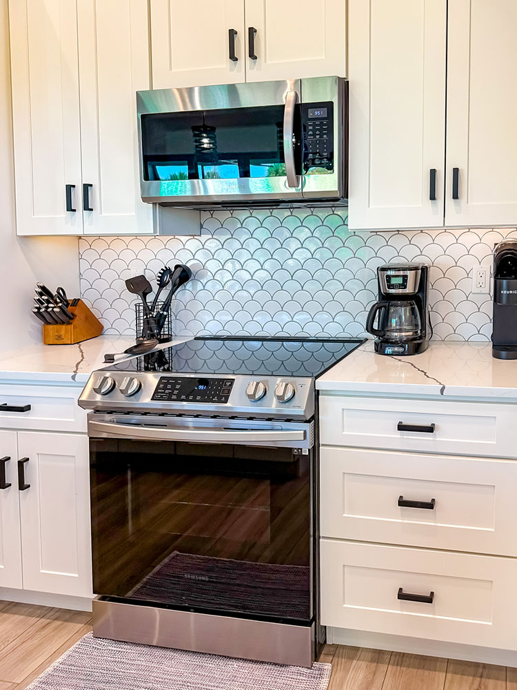 The kitchen is a true showstopper—oversized with a central island and dining bar, sparkling white marble countertops, stainless steel appliances, and ample cabinetry make it ideal for entertaining, large families, or island-style gatherings.