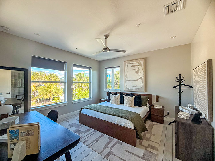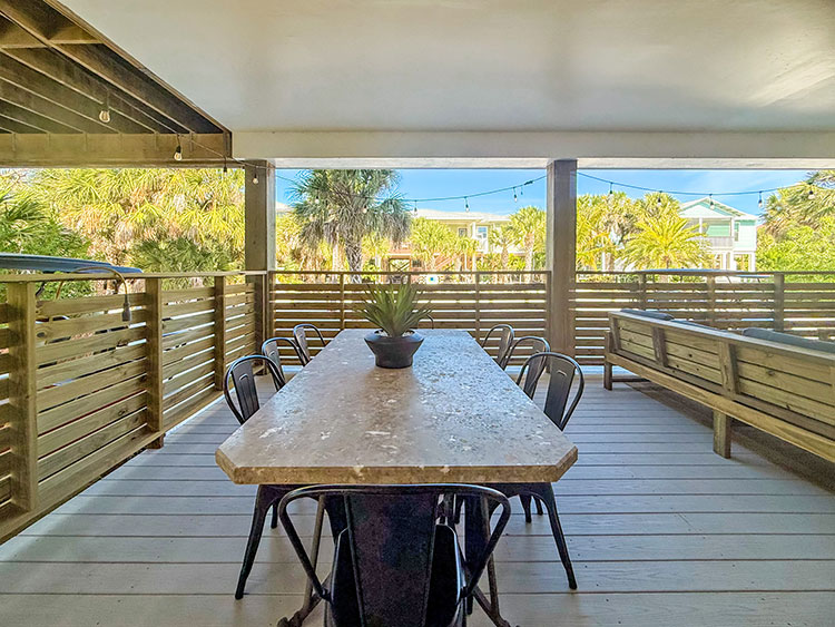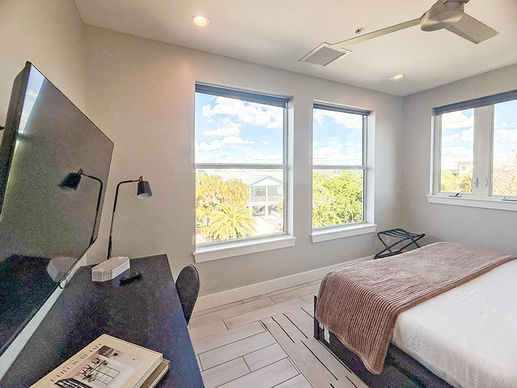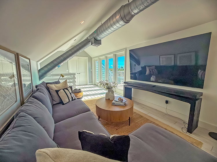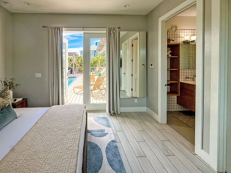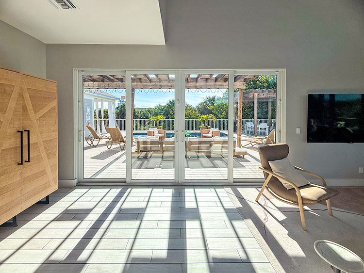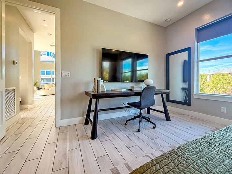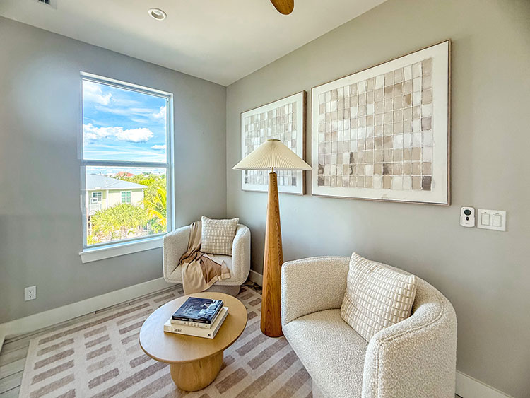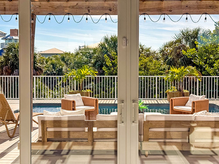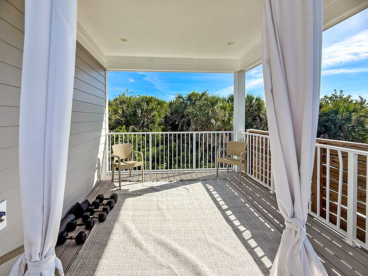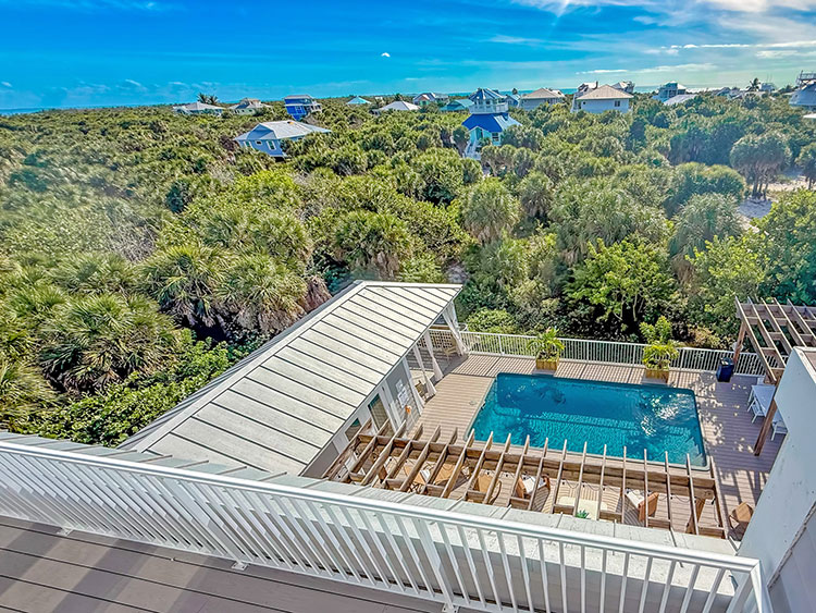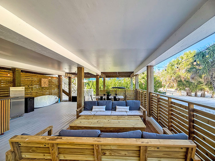 From sunrise to sunset, the home unfolds in layers of connection and calm. Mornings begin on the screened terrace with coffee and the sound of distant waves. Afternoons drift by poolside, floating beneath blue skies or gathering at the outdoor bar as laughter carries on the breeze. Evenings rise to the rooftop porch, where a panorama of island views, with rooftop peeks of the Gulf, Bay, and preserve, stretches endlessly with sunsets and stars that feel like a private performance just for you.