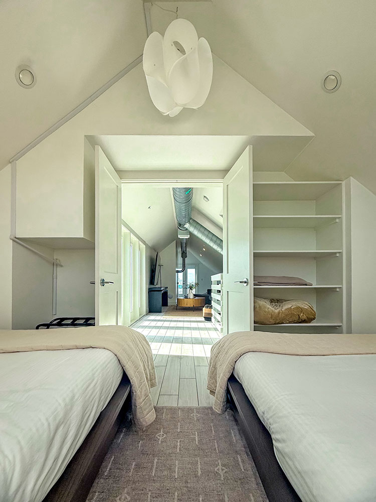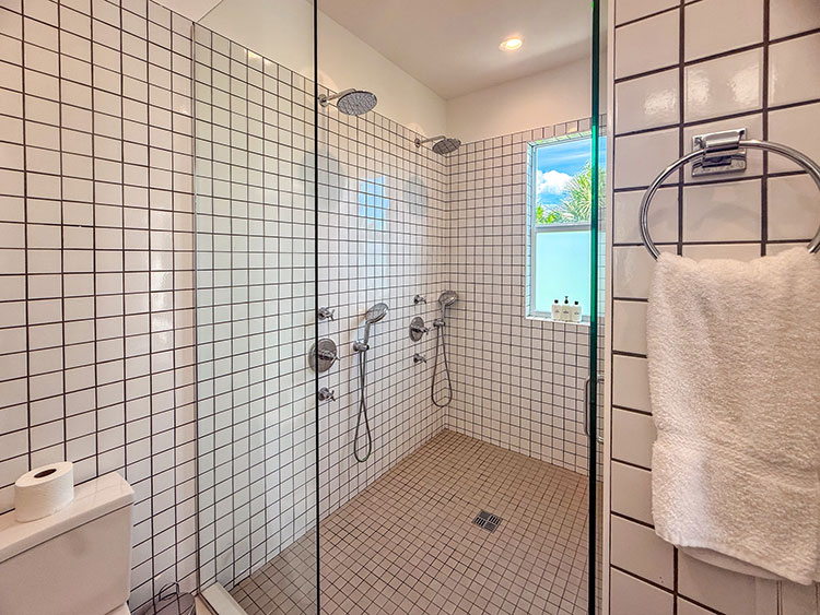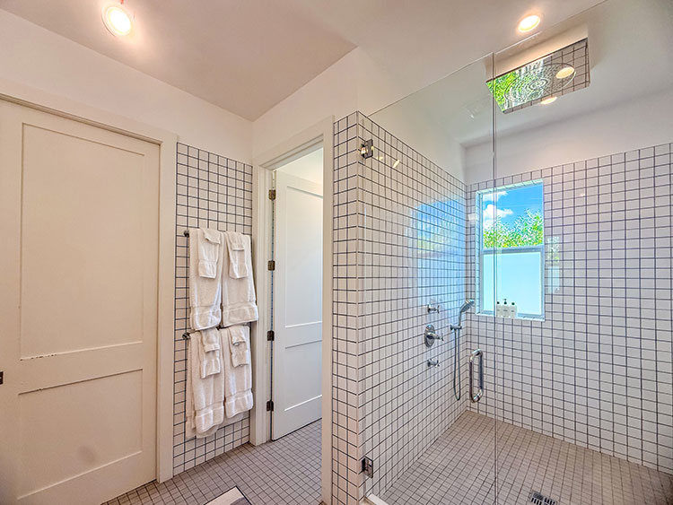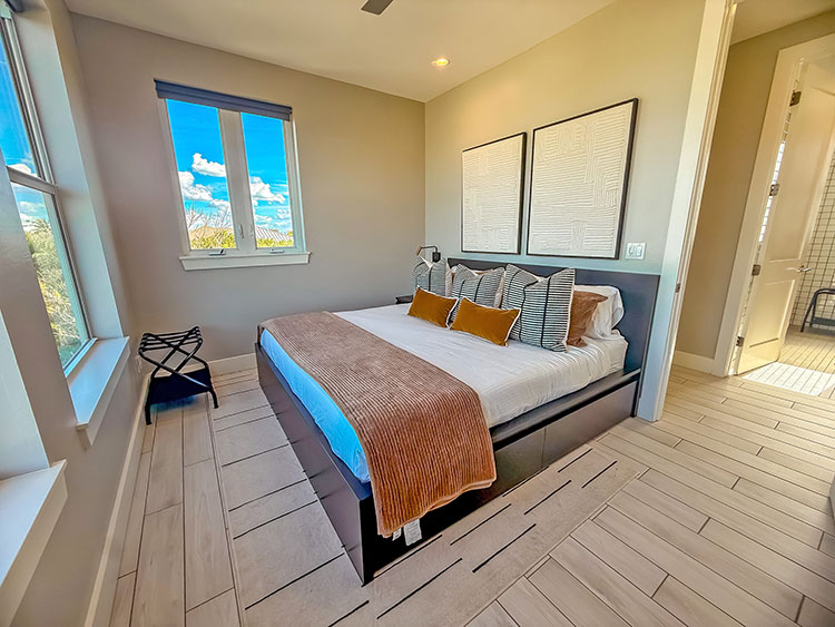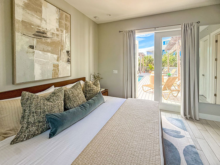 Accommodations are generous and thoughtfully planned, offering five distinct sleeping retreats. The primary suite feels like a private sanctuary, complete with a spa-style bath and walk-in rain shower. Two additional king guest rooms share a beautifully appointed bath, while a detached poolside guest suite offers privacy and independence with its own en-suite bath. The third-floor retreat, featuring two queen beds and access to a spacious loft lounge, provides flexibility for guests, media space, or a relaxed sleeping haven.